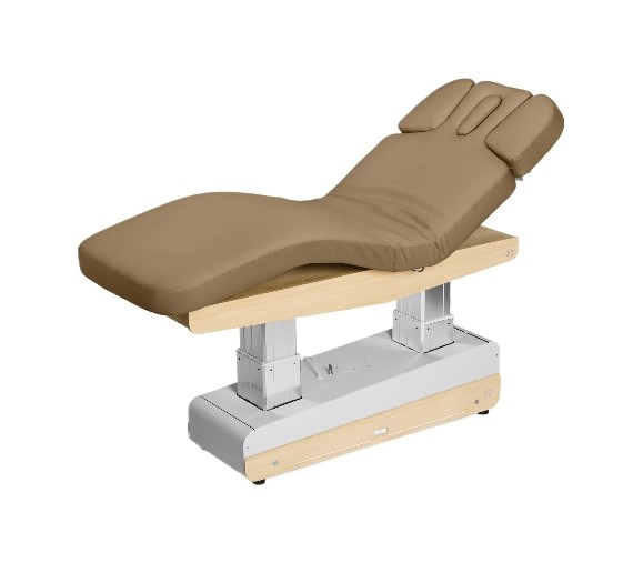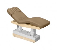 Массажный стол SPA150T Ультра современная электрическая трехсекционная кушетка с цельным матрасом, двумя колоннами, колесами, светодиодной подсветкой. 4 двигателя (высота, наклон, ножная часть, спинка), 3 положения памяти и функция сброса, система подлокотников «TwinLift» (двойной подъём) и подогрев. Ручной дистанционный пульт, (аудиосистема и дополнительный ножной пульт доступен как опция за отдельную плату).Максимальная нагрузка 200 кг. Обивка нового поколения: 100% винил. Превосходная стойкость к истиранию: >250 000 циклов. Защита от микробов и УФ-лучей.